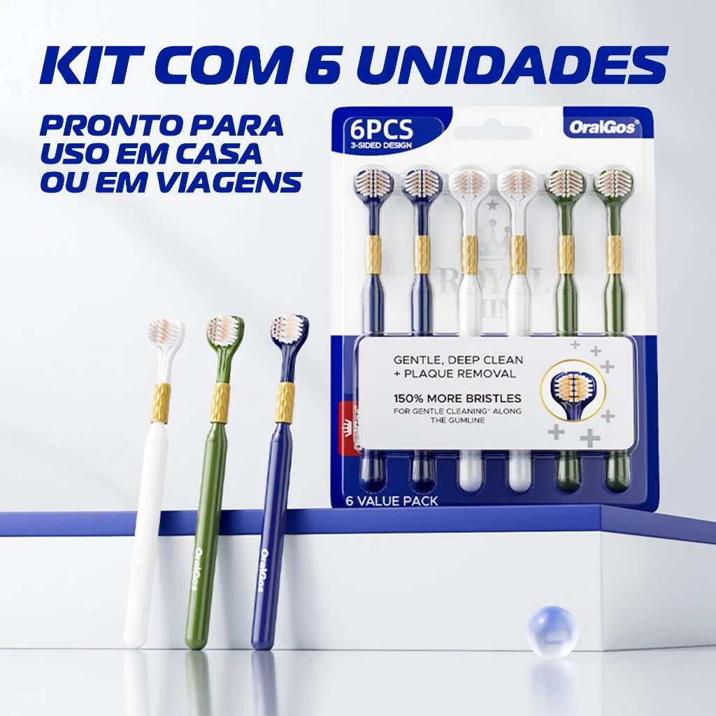 Kit OralGos 6 Escovas de 3 Lados – Limpeza 360° e Cerdas Extra Macias -DB206-USA