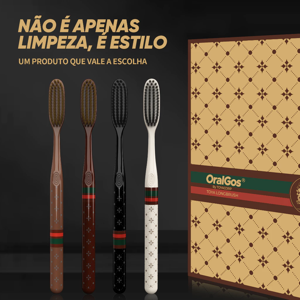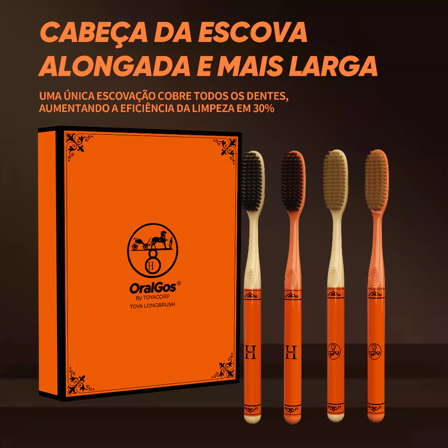 ESGOTADO- OralGos Cabeça Extra-Longa Escova de Dental,Design Curvo, Kit com 4 Escovas + 4 Cores Elegantes- DB776