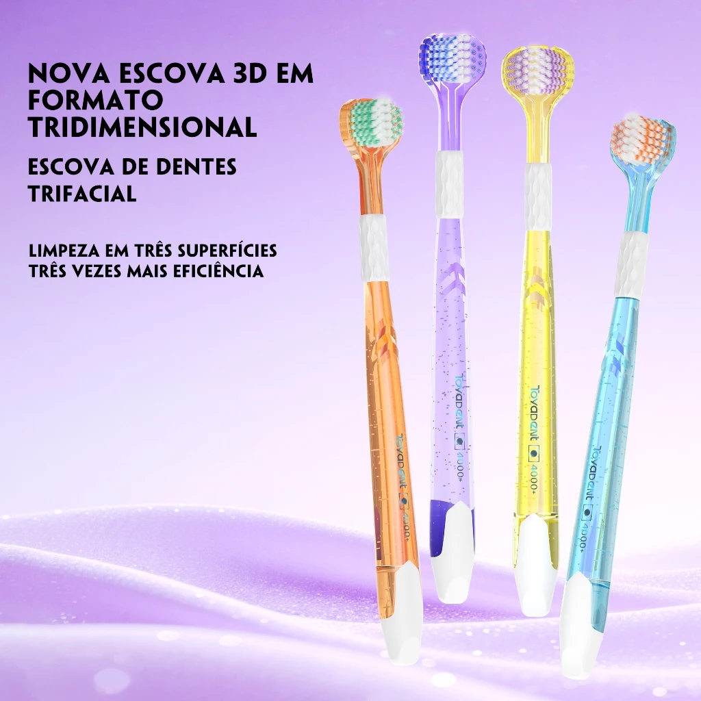 TOYADENT Escova de Dentes Tripla C/ Limpador de Língua,Cabeça Arqueada,Capas Protetoras+4 Unidades- TY535
