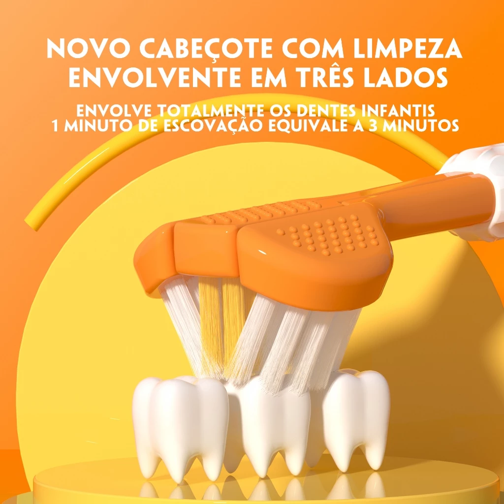 Produzido em material PETG transparente, o cabo apresenta um acabamento facetado elegante que cria um visual moderno e sofisticado, trazendo um toque estético diferenciado ao ambiente do banheiro. A escova está disponível em 6 combinações de cores contemporâneas, tornando o produto ainda mais atrativo e fácil de identificar entre os membros da família.