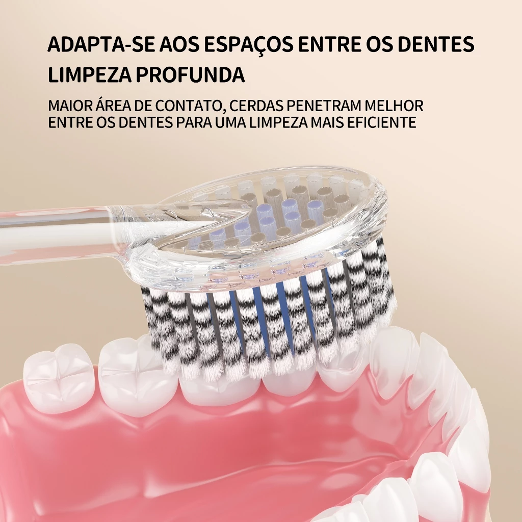 Anel externo, que garante a limpeza completa do contorno dos dentes.