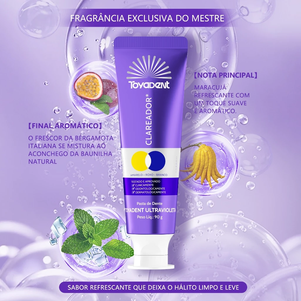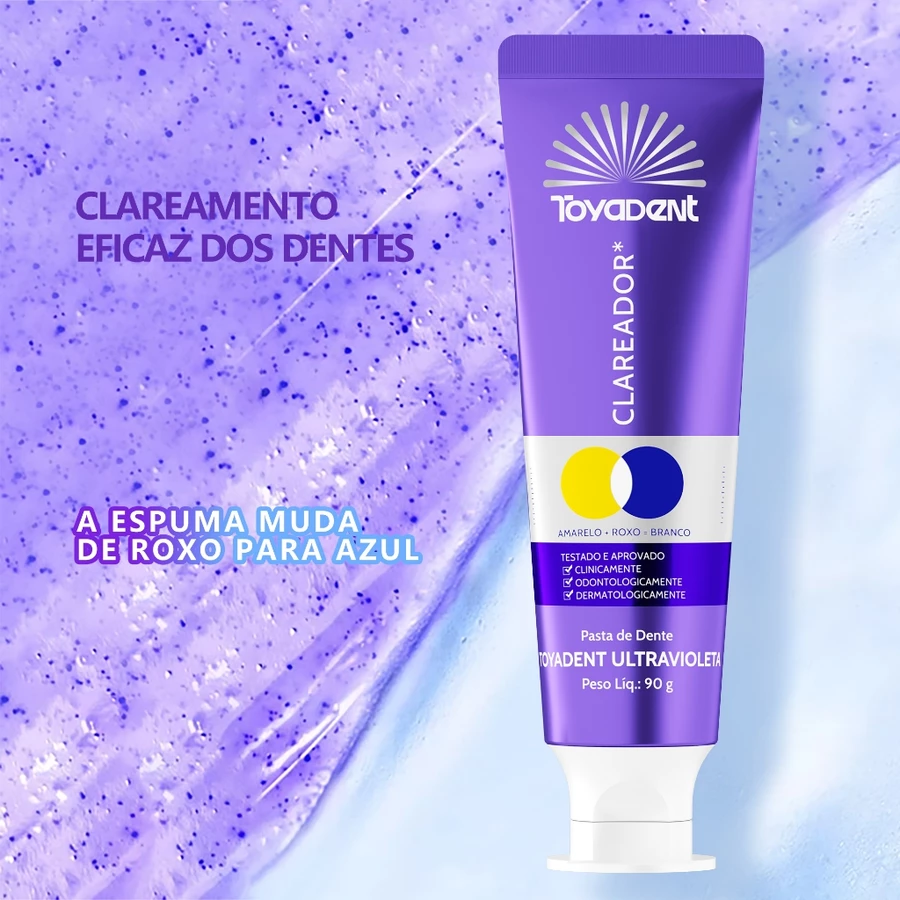 A TOYADENT Pasta Dental foi desenvolvida para atuar no realce da aparência natural do sorriso por meio de tecnologia óptica corretora de tom, aliando ciência, segurança e cuidado bucal diário. Sua fórmula inovadora combina partículas violetas e TOYAPAN®, atuando visualmente na neutralização de tons indesejados sem alterar a estrutura dos dentes.